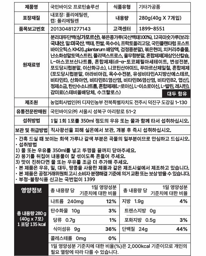 [국민바이오] 100% 국산콩 국민바이오 제주나물콩두유 180ML 40개입 + 프로틴솔루션 1팩 증정