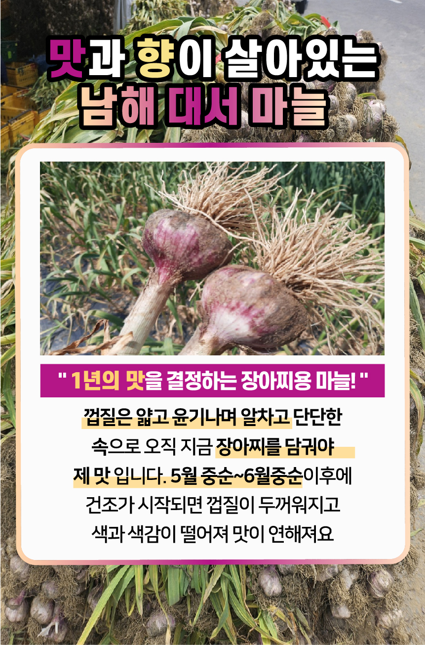 맛과 향이 살아있는 25년 햇 남해 장아찌용 대서 마늘 특품 상품 중품
